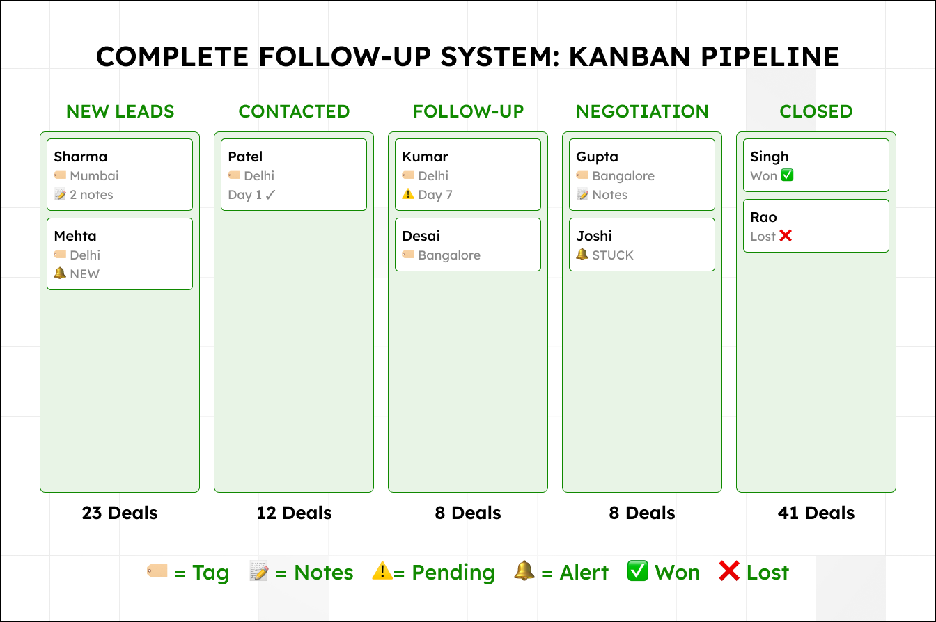 An education consultancy in Hyderabad had 4,000 WhatsApp contacts. No tags, no pipeline, no follow-up system. Just names and chat histories. When they needed to re-engage leads interested in a specific course, they had no way to find them. Conversion rate sitting at 8% — not because the leads were bad, but because the follow-up system was hope.